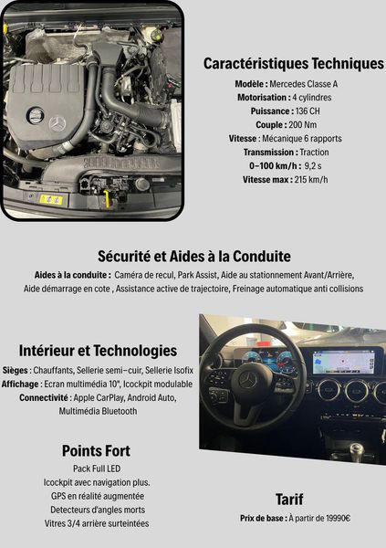 Suivi d'entretien complet Mercedes et fiche technique mercedes disponible.